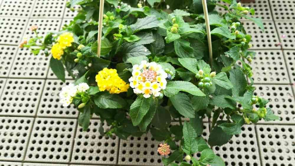 先日購入した300円のランタナ🏵️花が咲きました🌼白と黄色でこれまたキュート💞
