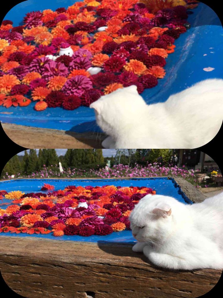 昨日行ったダリア祭でかわいい白猫の小雪ちゃんに出会いました😊