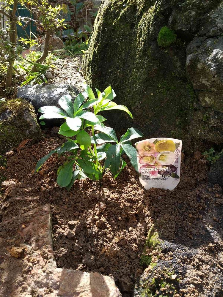 ガーデンセンターを見ていたら偶然クリスマスローズを見つけ地植と鉢植え用の2株買い植えてみました。植えてから12〜15ヶ月後に開花するとあったので楽しみにします。