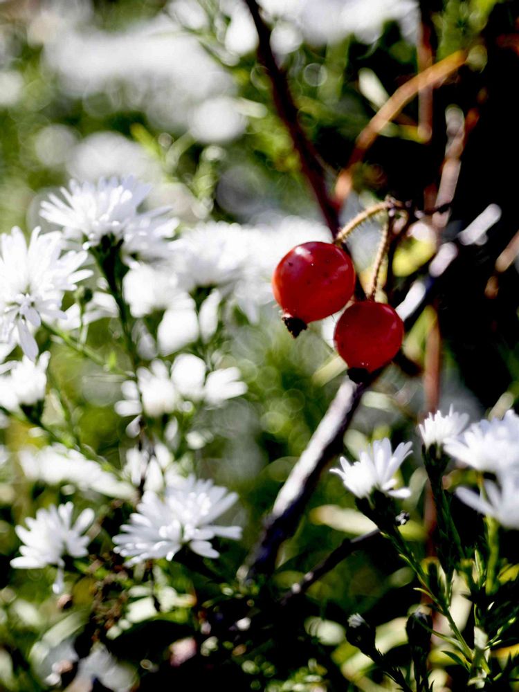 カルメネッタと言う薔薇の実に菊見たいな白い花は何ですか?🤔