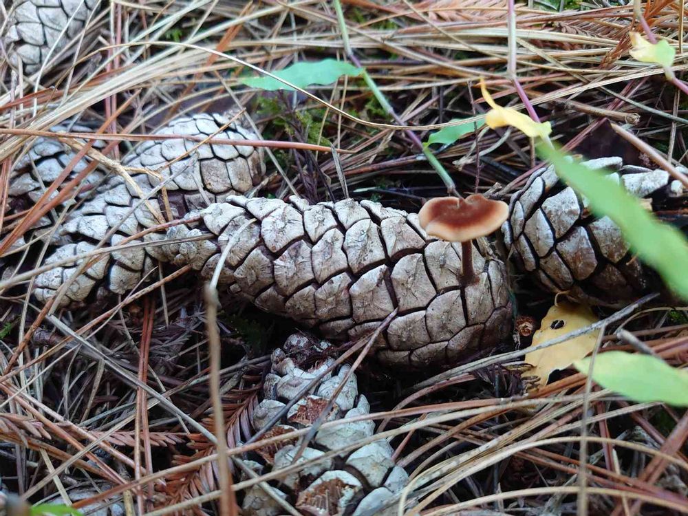 「ママー、ママー、こんなん見つけたー!松ぼっくりにキノコ生えてるー♪」って言ってる光景を見て、
