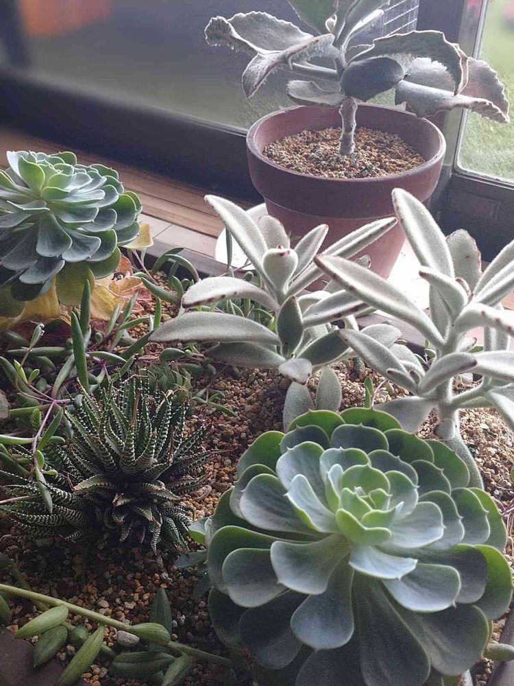 私は多肉さんは全くの初心者なので良く分かりませんが最近少し勉強しています。とりあえずみんなまとめて植えてみました😃 でも、七福神さんの下の方がちょっと枯れてきました😧