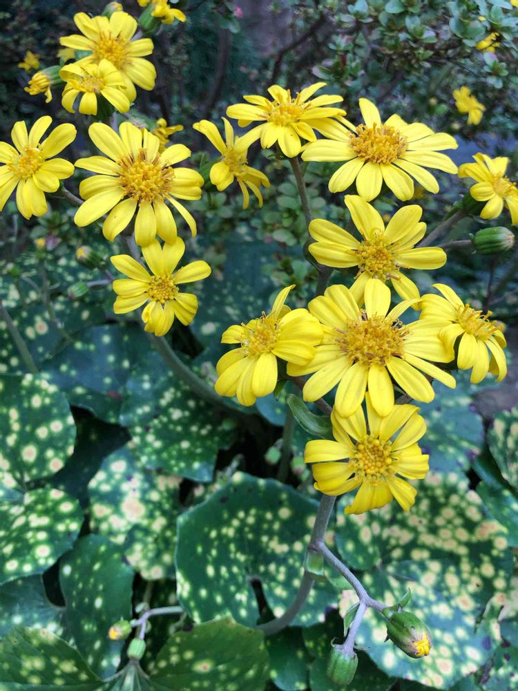 斑入りのツワブキ、キラキラ光って綺麗ですね☺️