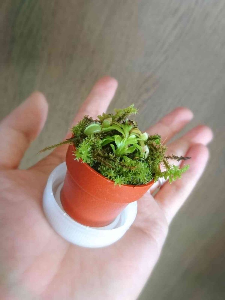 夏に小さくなってしまったハエトリ草。生きた苔に植えてみました。
