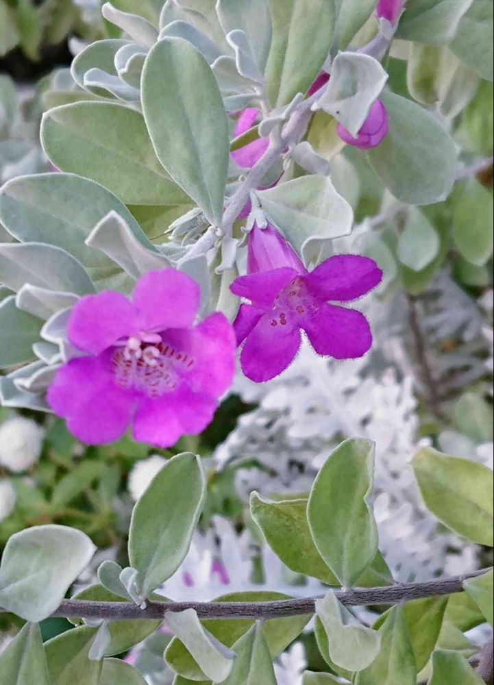 赤紫色の花と銀色の葉っぱはシブくてカッコいいですね❢