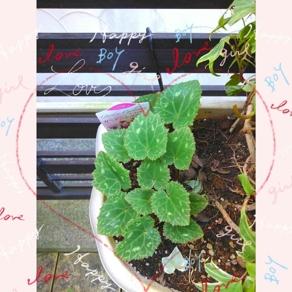 小さな庭,シクラメン(白),写真加工アプリの投稿画像