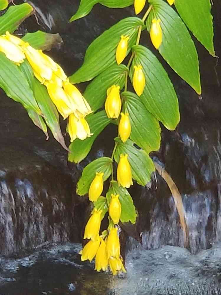 こんばんは。滝みたいに水が落ちるところに咲いているのですね。
