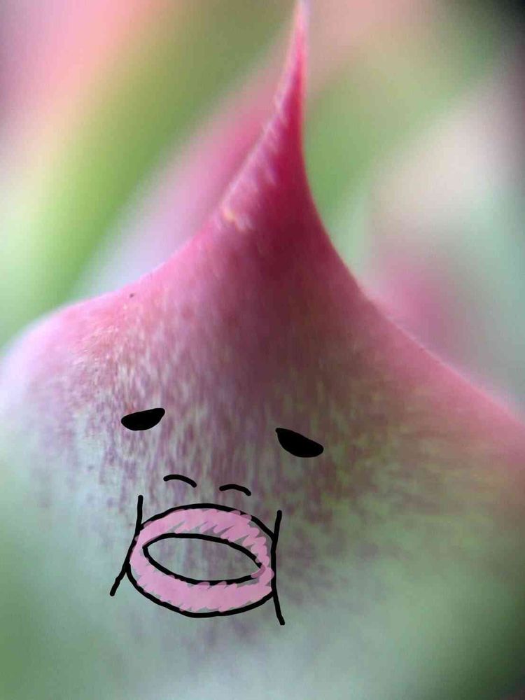 みなさんご存知ですか?こびとづかん。それに出でくる『カクレモモジリ』に形がそっくりだったので、お顔を描いてみました💕