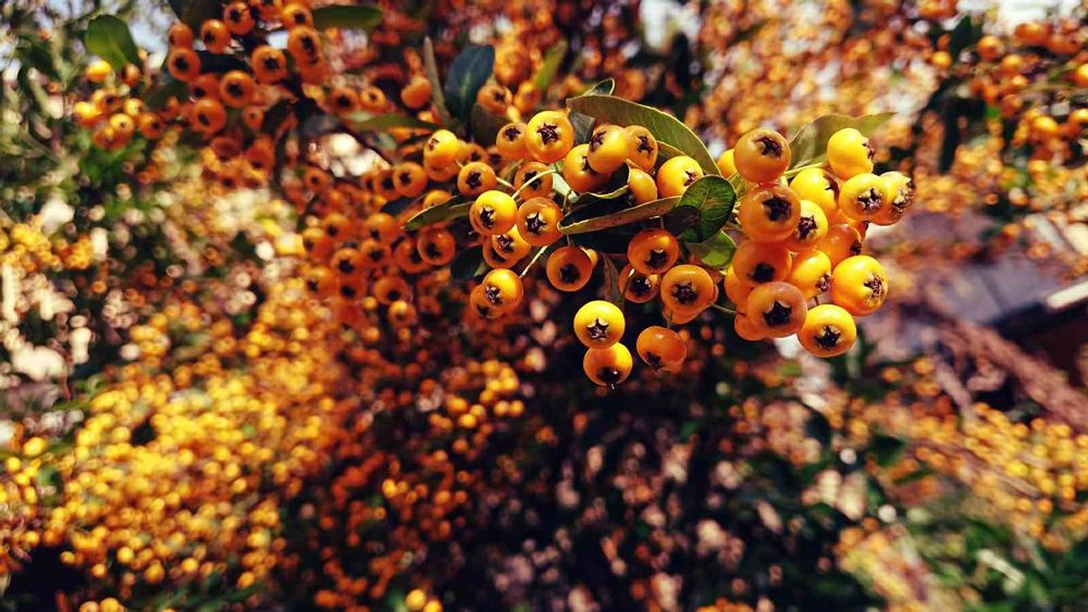 散歩の道を変えたら!鈴なりの実がきれいなお庭に出会えました。