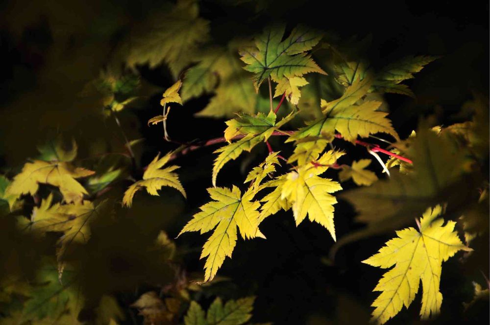 秋の山に美しい黄色の彩りを添える高山性の峰楓。