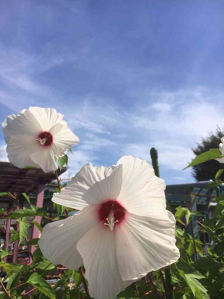 夏空に白いハイビスカス🌺