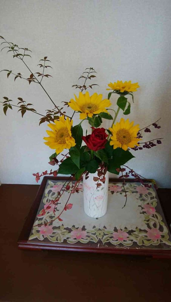 バラと向日葵の組み合わせすごい可愛いです⭐️飾り変えた後も楽しみですね♪