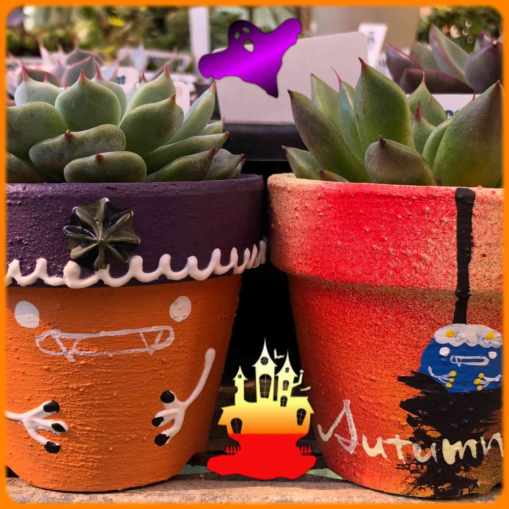鬼っちのハロウィン鉢🎃とみのむし鉢でちょっとハロウィン仕様にしてみました✨