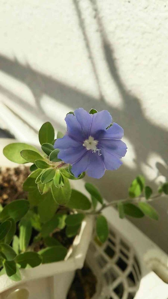 今年の8月14日に 親株を剪定してカットした枝を捨てずに 水に浸けていたら発根しました。それを植えたら、今日 お花が咲きました。空と同じ色です。強い生命力‼