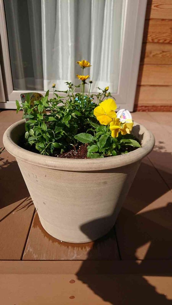 ちょうど大きい鉢だし、他にイエローの花を探すとちょうど良さそうなのがあったのでチャレンジ!☺