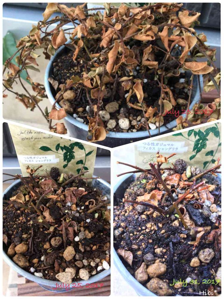 買ってから植え替えがなかなかできなくて、ポリポットのまま育てていたフィカスシャングリラ。直射日光当たりまくりな室外機近くに居たせいか25日こんなお姿に( ꒪⌓︎꒪)ごめん。言い訳はせんどく。