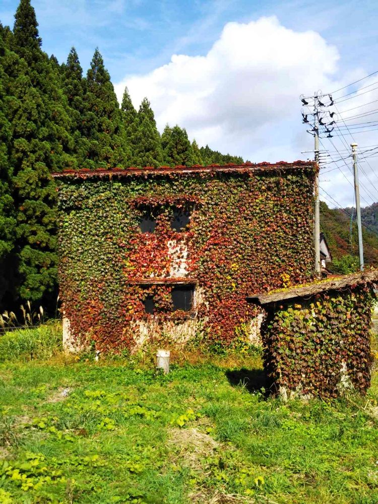 囲いの合間に、廃墟🏚️蔦は、今年は中心部から紅葉してきました😃