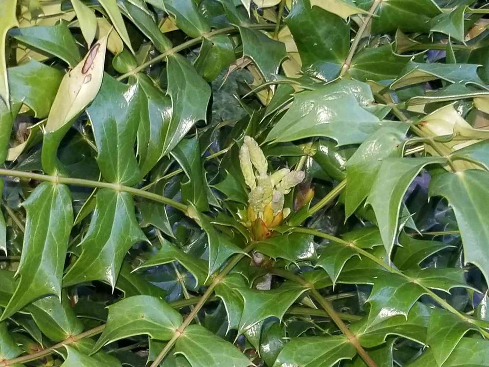 昨日から来たマホニアチャリティーです😆🎵🎵蕾がついています😁真冬に咲く花です\(^-^)/😳😋