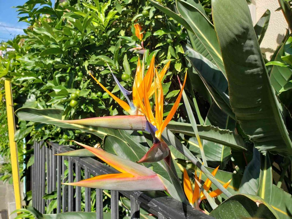 『極楽鳥花』という名前のとおり、美しい鳥がくちばしを開いて歌っているような印象を受けました。20日に宮崎の義兄が亡くなり、悲しみでいっぱいでしたが、散歩で見つけた花たちに元気をもらいました。