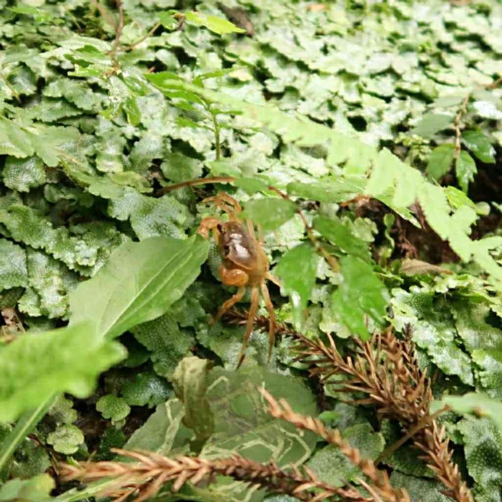 表面が鱗を並べたように見えるのでそうかなあ…😅見事に湿気のある山道の斜面を覆ってました。どうしてここに?の沢蟹付き🎵