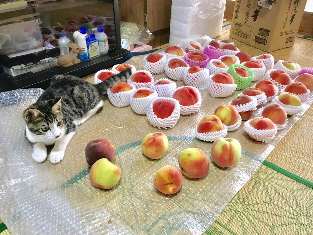 自家製桃仕分け中🍑