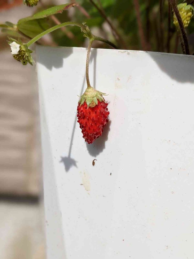 枯葉のお手入れをしてたら🍓赤くなってました♪