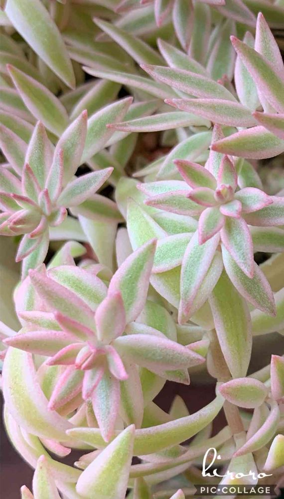 覆輪万年草、ピンクに色づいて可愛いよね💗別名、姫笹👸✨春には黄色いお花も咲くよ〜伸びてきたら✂️して挿しておいたらすぐつきますよ!!可愛い子、増やしてね。:*♡(´,,•ω•,,)♡*:。