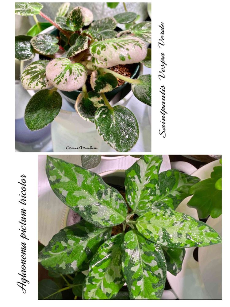 はい、上はセントポーリア。下はアグラオネマ ピクタムです🌱🌱🌱🌱🌱