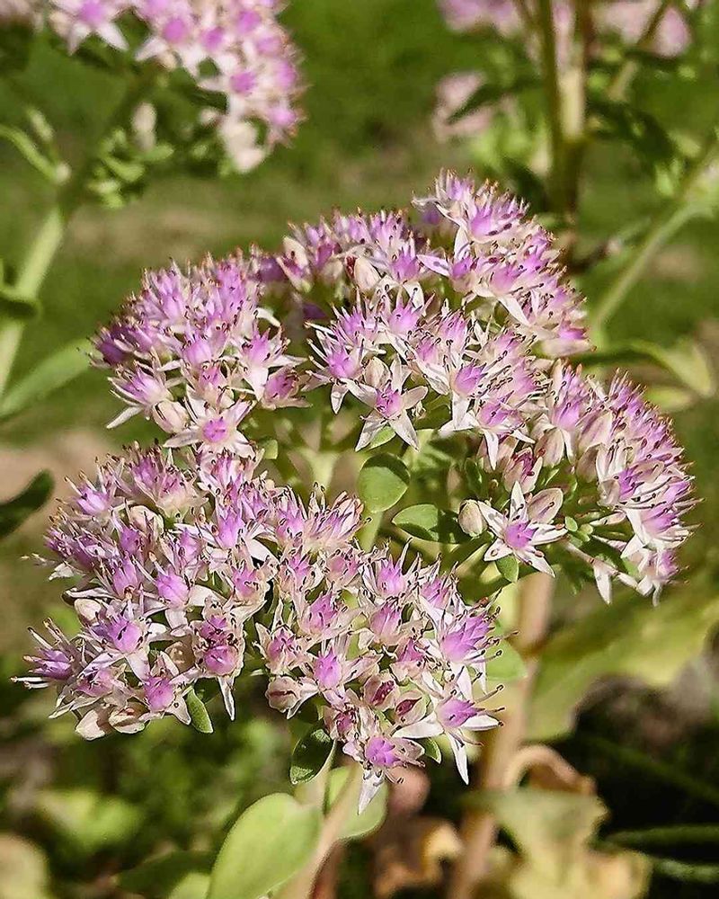 ベンケイソウ科ムラサキベンケイソウ属の多年草。中国原産で大正時代中期に渡来した栽培種。日当たりのよい乾燥した場所に生える。多肉質の葉は銀色を帯びる。花期は8~10月。大きな半球状の花房をつける。雄しべが花弁よりも長い。