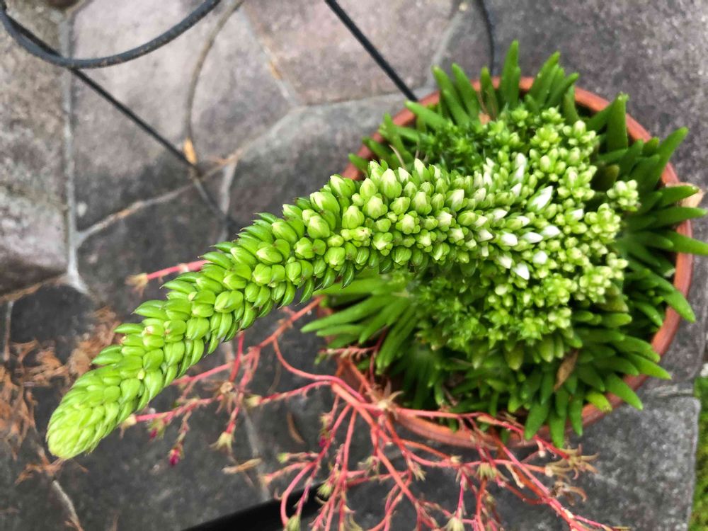 下のほうは多肉植物っぽいですが20センチくらい塔のように伸びています。
