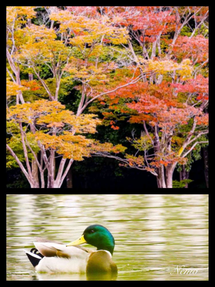 欅の紅葉🍁とマガモ♂さん