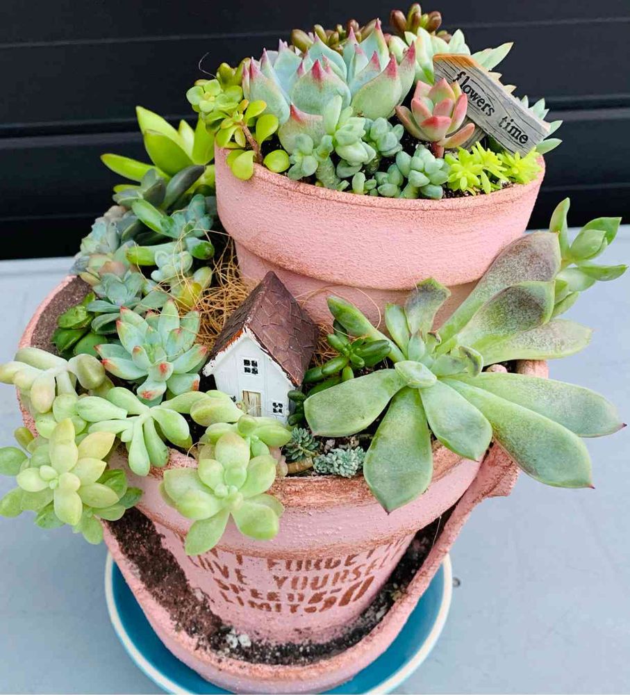 ピンク色の植木鉢に🌵多肉ちゃんの 寄せ植えをしていたのですが…