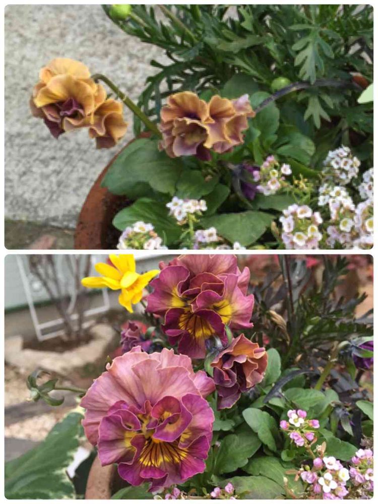 同じ寄せ植えなのに、2ヶ月の間にこんなに花色が変わってしまいました💦どうしたのかな?上の子が年末で下の子が最近の写真です😊💕