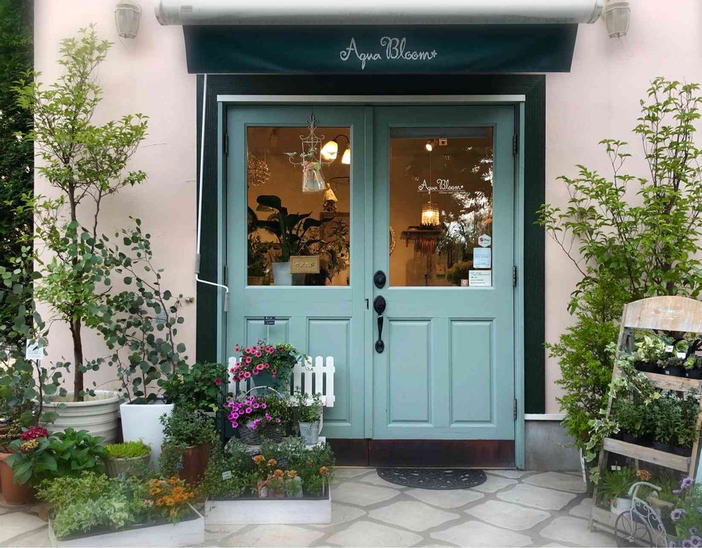 今日のお花 ヒメシャラと水色のドアが目印のお店です。