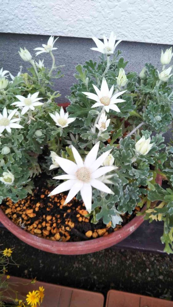 うちのフランネルフラワーも咲きはじめています♫でも少し元気なくて心配です💦チョコレートコスモスと一緒の寄植えなんですけどね