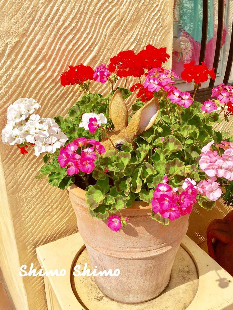ゼラニウム 綺麗😆🎵ウサギさんも 隠れ家ができて嬉しそう😃✨