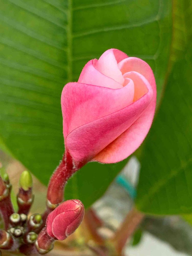 おはようございます☀今朝のプルメリアの蕾💓これから開きますがこの段階でとても良い香りです。蕾の姿も可愛くて可愛いくて😍