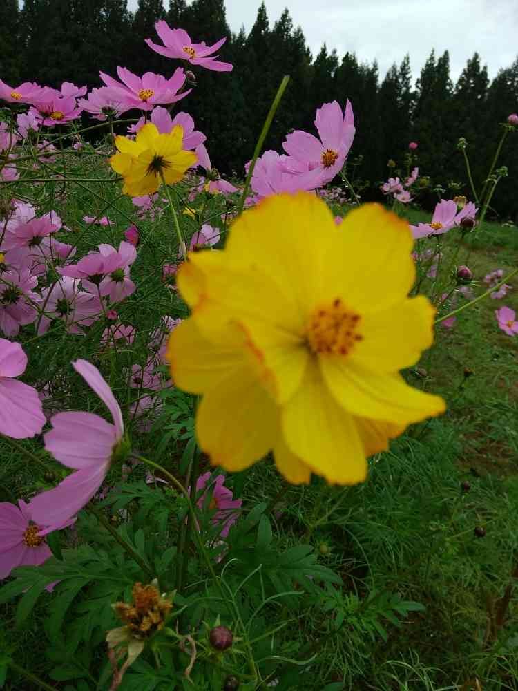 黄色コスモスさんは二重の花びらで可愛かったデス✨🌿