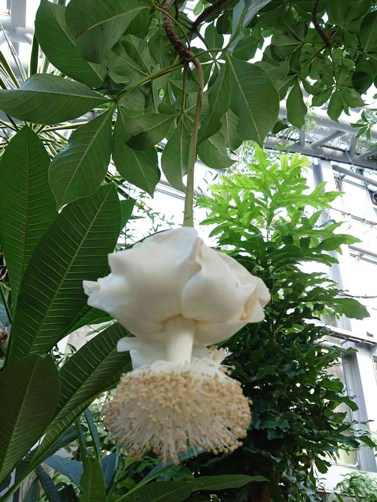 植物園の入り口で頂ける日報みたいなのにバオバブのはなが開花していますって書かれてて温室に入って見ることができて 解説に翌朝には落下との記載を見て なんてラッキー🍀って思いました(o^^o)ウホホ