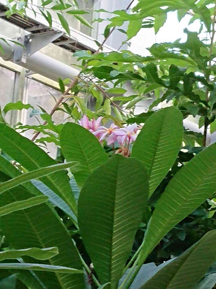 大きな葉っぱから綺麗なピンク色のお花がちょこっと顔を覗かせていました🌸