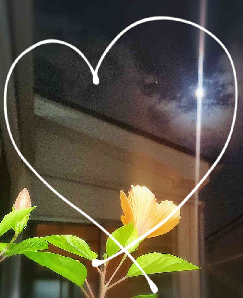13夜のお月様🌔と火星🌟とハイビスカス🌺