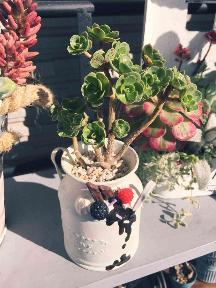 以前に作ったリメ缶にアエオニウムのチョコチップを植えました🍓🍫🍓🍫🍓🍫