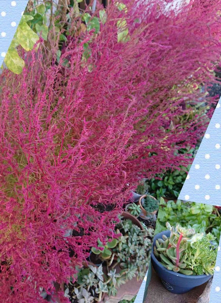 おはようございます😊庭のコキアさんとピンクルルビーさんの茎が真っ赤に💖 これからまだまだ楽しみです✨