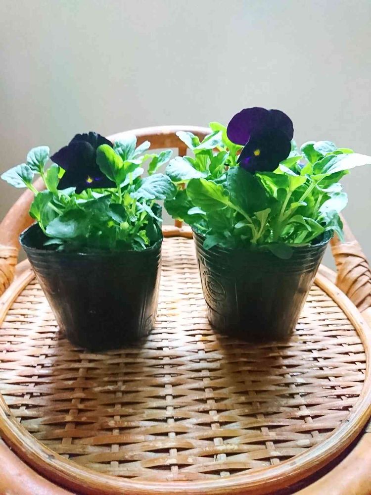 ちょっぴりレアな黒色が80円ビオラの中に2つだけ混ざって売ってました。即購入