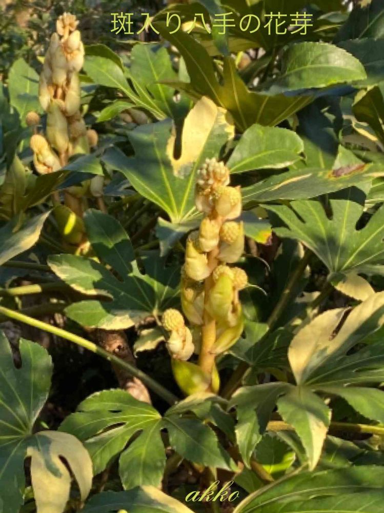 ひみつのアッコちゃんさんのお出かけ先,花芽たち,斑入り八手(やつで)の投稿画像