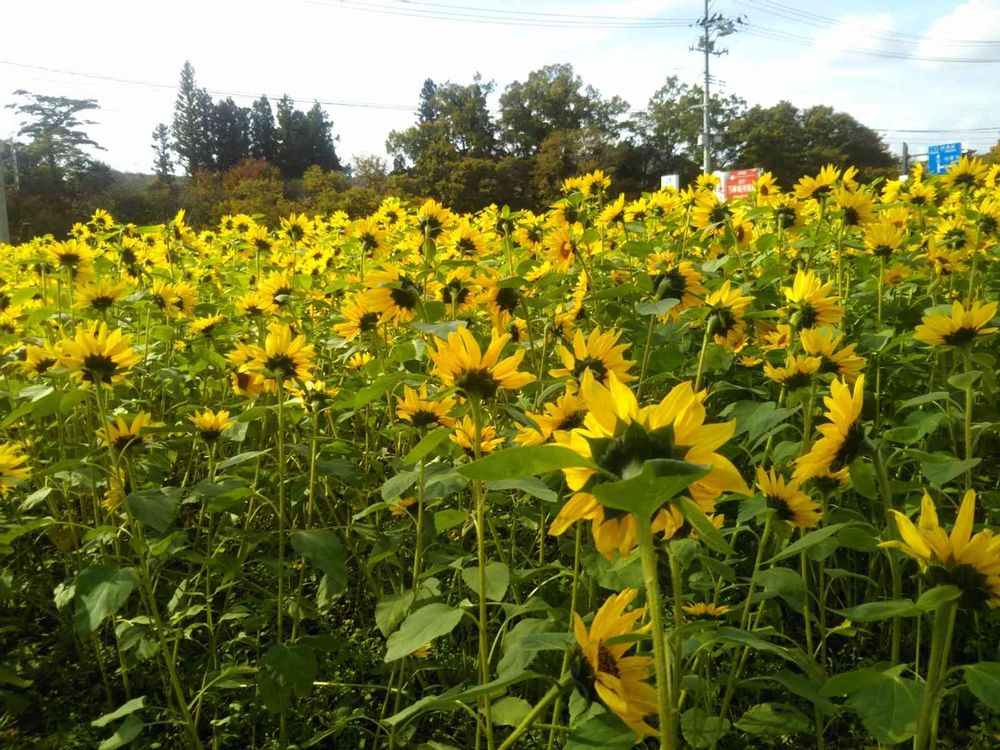 遅咲きのひまわり,黄色い花,青空の投稿画像