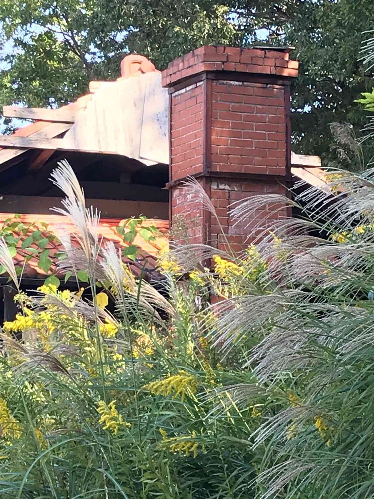 近くの陶芸教室の登り窯煙突にススキが丁度いい感じだったので😊