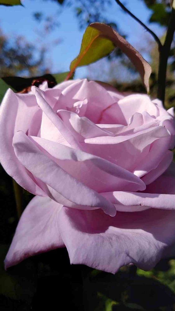 薄い青紫色の美しいバラ、天高く咲いていて、気品もありました🌹✨