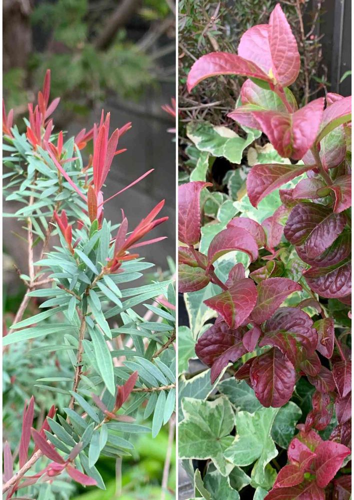 西洋南天(セイヨウイワナンテン)の葉っぱが赤く染ってきました🍁🍂右