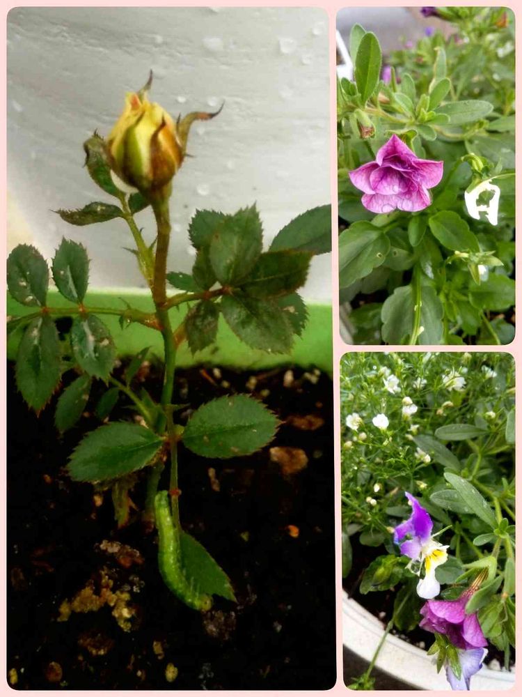 ミニバラ「ミルキーウェイ」🌹にまだいた『青虫🐛』、ミニバラ「リトルウッズ」🌹に『ヨトウムシ』と言う茶色の芋虫もいて、ビオラの寄せ植えの鉢に『ナメクジ』が2匹もいました😱😱
